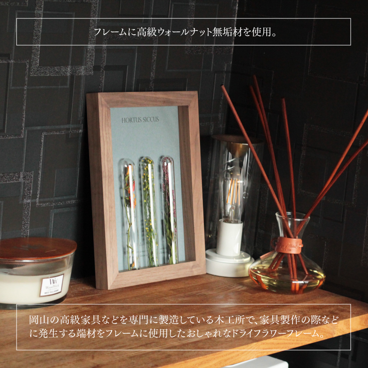 高級ウォールナット無垢材を使用し、日本の職人が一つ一つ丁寧に作るフラワーフレーム