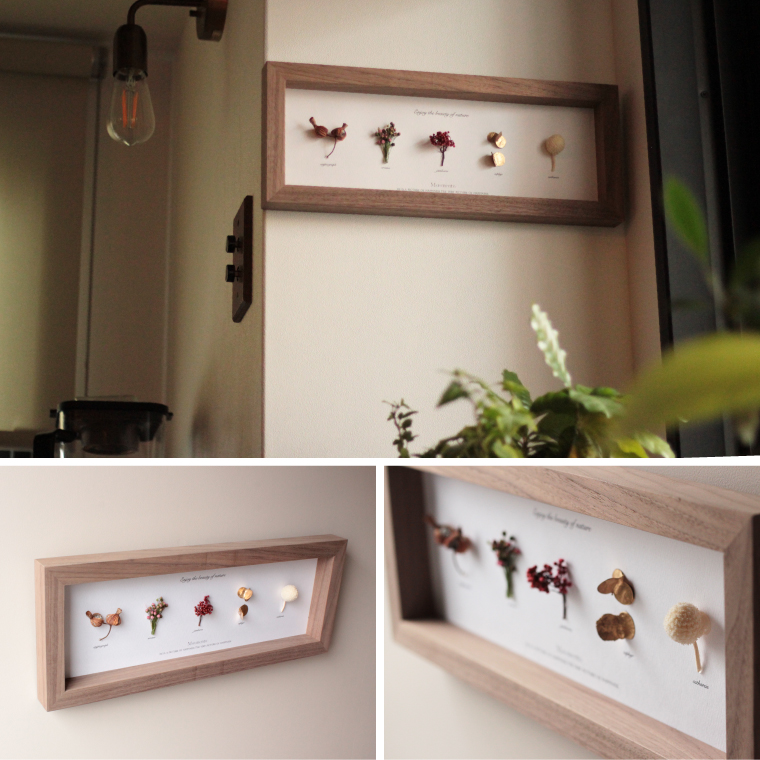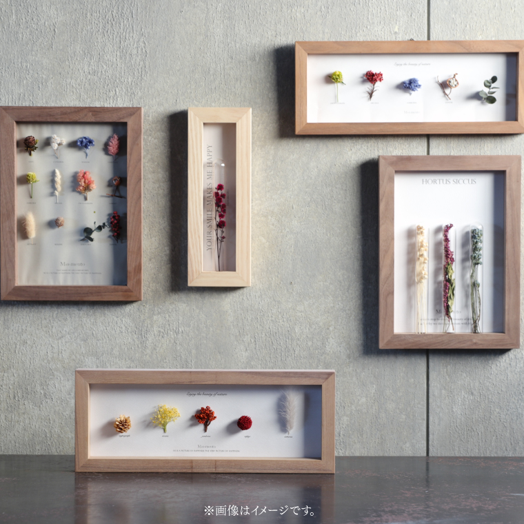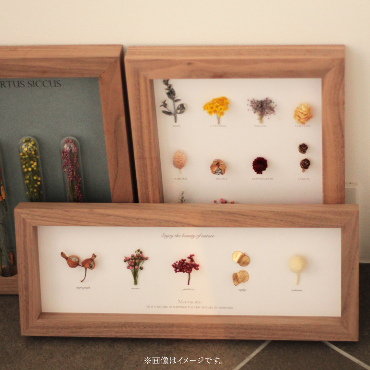 「Moement(モエメント)」 ボタニカルフレーム Herbarium5岡山の高級家具などを専門に製造している木工所で、家具製作の際などに発生する端材をフレームに使用したドライフラワーフレーム。