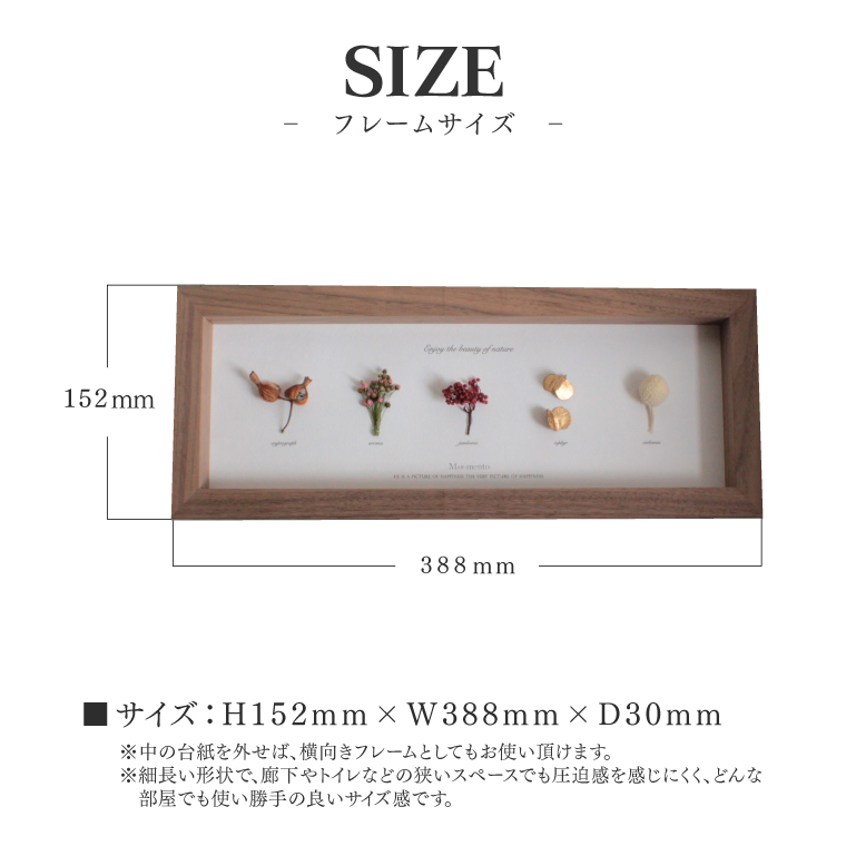 フレームサイズは、H152mm W388mm D30mmです。