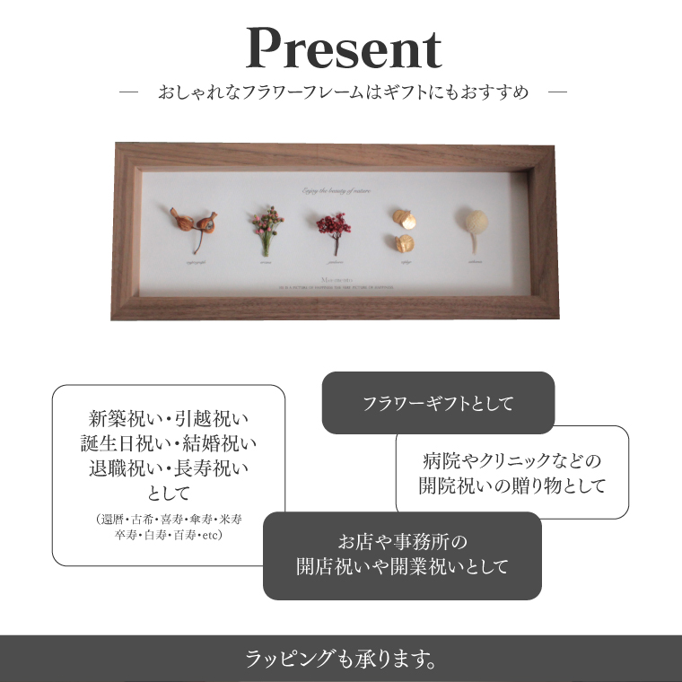 おしゃれなフラワーフレームはギフトにもおすすめ。