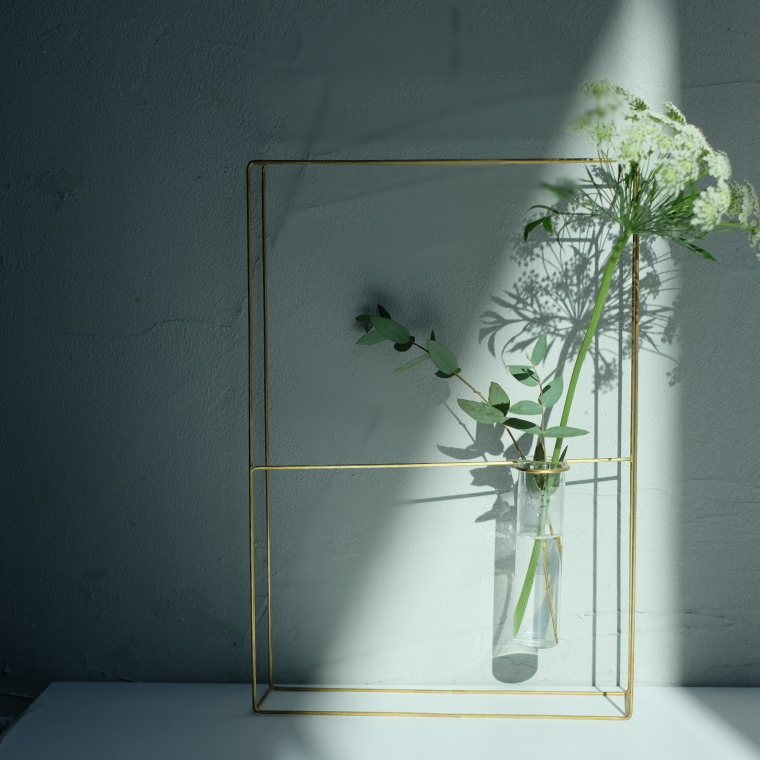 シンプルで華奢な真鍮フレームがお花を引き立てる、高級感のあるフラワーベースです。