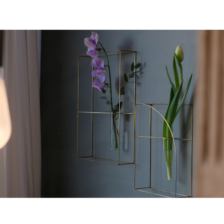 シンプルで華奢な真鍮フレームがお花を引き立てる、高級感のあるフラワーベースです。