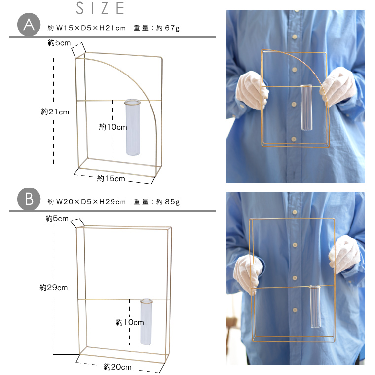 【B】 約 W20×D5×H29cm ガラスチューブベース:約 Φ2.5×H10cm 重量:約85g |