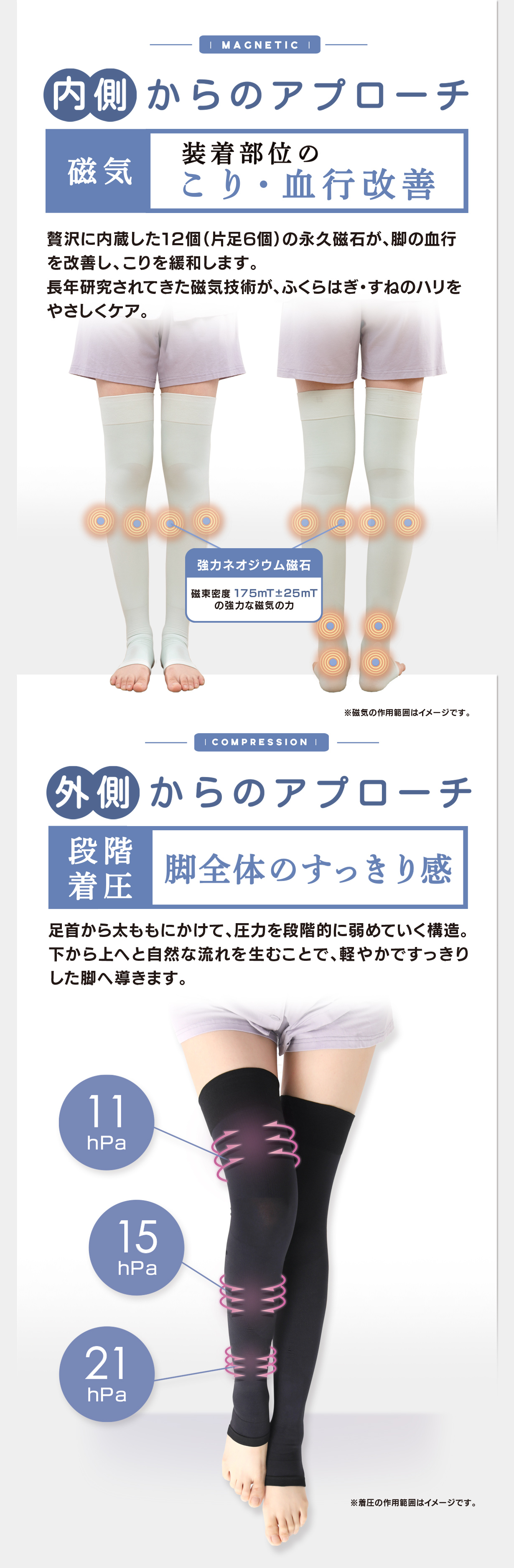 \磁気×段階着圧の力で脚を集中ケア/
