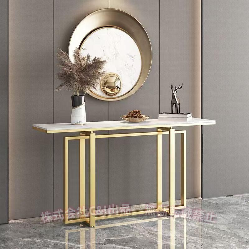 コンソールテーブルリビングルーム、 C&J コンパクトスリム大理石のコンソールおしゃれオープンタイプサイドテーブル収納ラック金属フレーム廊下長いテーブ
