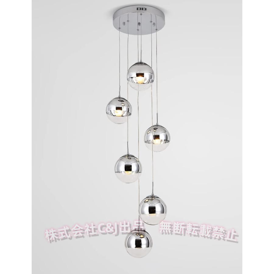 らせん階段ペンダントライト ガラスボールバブルランプC&J(株)2-大型天井照明 リビング/廊下/吹抜けに 30×150cm 6灯風 シルバー装飾