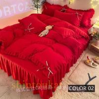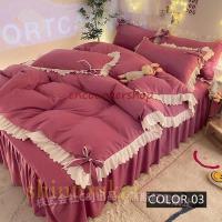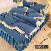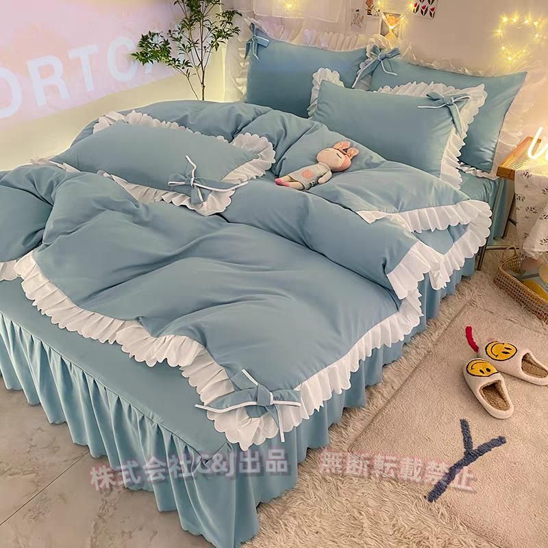 布団カバー4点セット 無地 オシャレ 姫系 リボン ベッドカバー ベッドスカート フリル 可愛い フラットシーツ 株式会社錦掛け布団カバー 通気 春夏 セミダブル