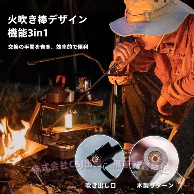 火バサミ 薪バサミ 焚き火 トング バネ付き 火吹き棒一体型 防錆処理済み ゴミ拾い 錦 コンパクト スチール製 炭バサミ キャンプ BBQ アウトドア バーベキュ