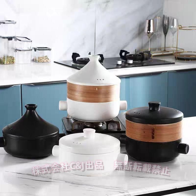 セラミックタジン鍋モロッコ料理用、蓋と蒸し器付きキャセロール、ダッチオーブンスープポット、(株)C&J 直火タジン石鍋シチューポット