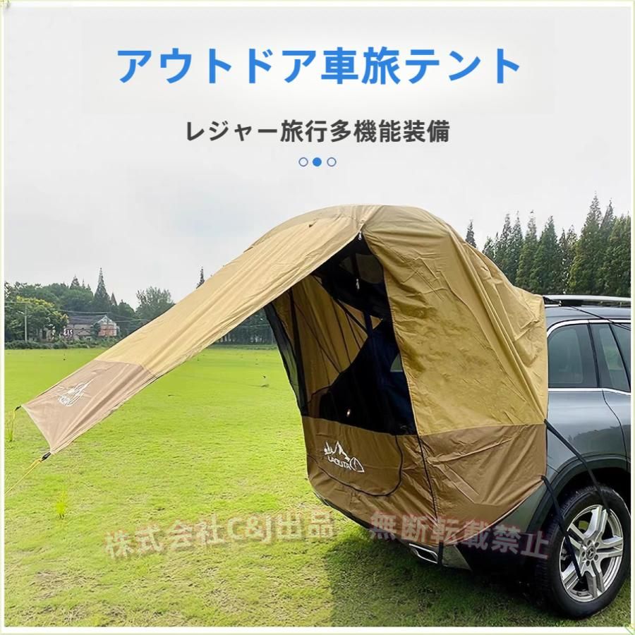 【各車類が設置可能】:自動車、SUVからミニバンまで幅広く使えるカーサイドタープです。 後方はリアゲートを開けてサイドにタープを設置する事で広い面積でアウトドアを満喫する事が出来ます。車側と連結してカーサイドリビングとしても使用できます。