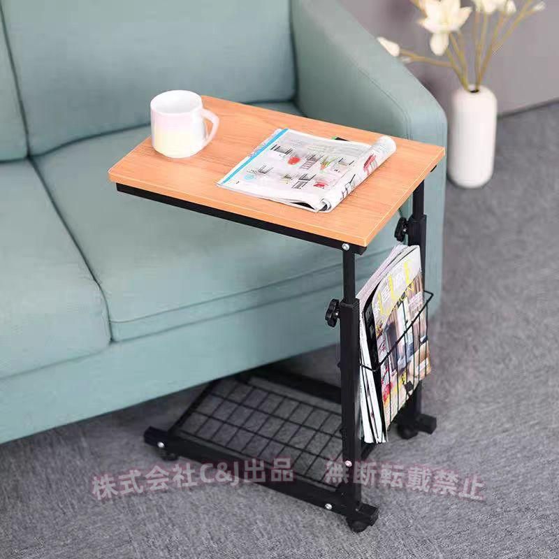 76cm 介護テーブル 昇降サイドテーブル カフェテーブル C&J ソファサイド 木色