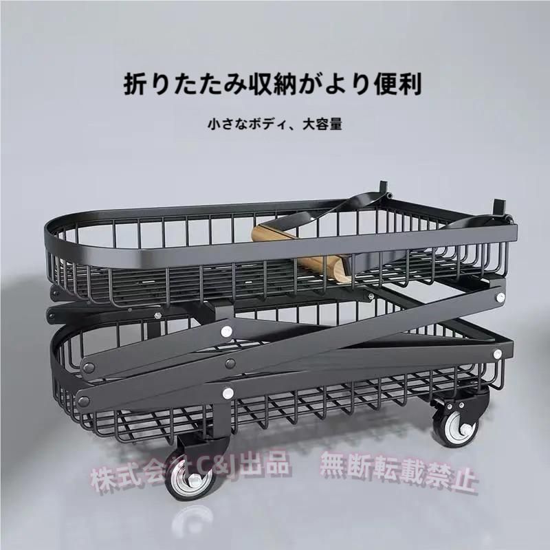 多用途金属実用カート、スライド棚付き、(株)C&J 折り畳み可能な便携二層建てカート