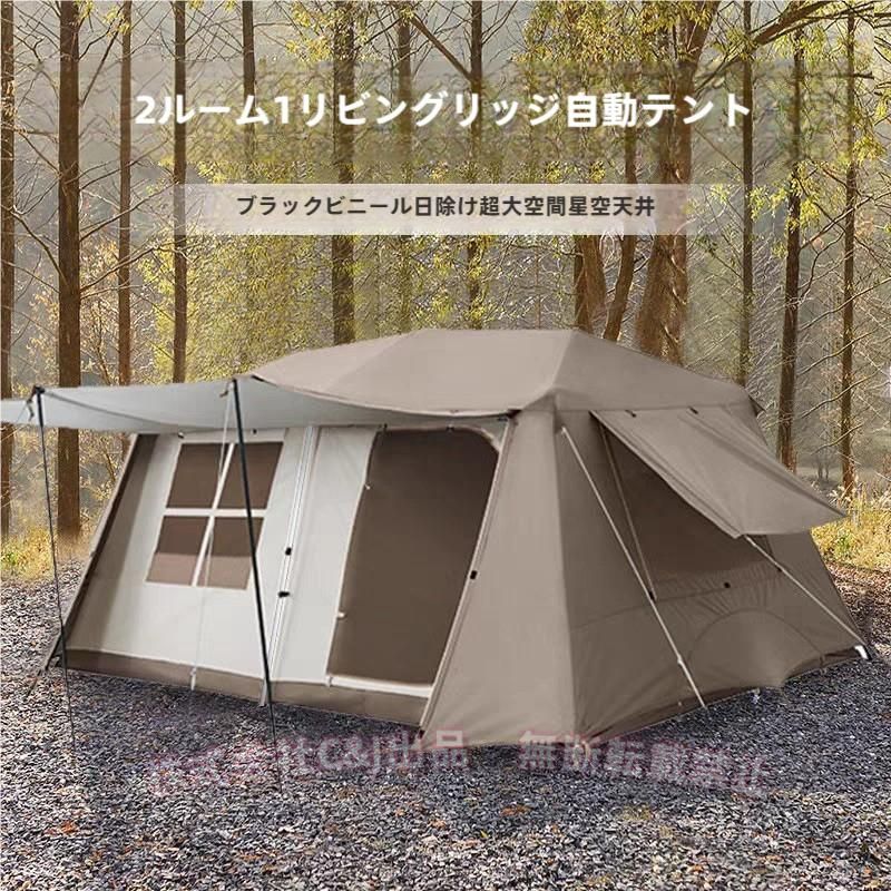 ワンタッチテント 4-6人用 ロッジ型 自立式 一体型 C&J(株) 前室2つ 前室ポール付き 設営簡単 キャンプ ハウステント 大型キャンプ
