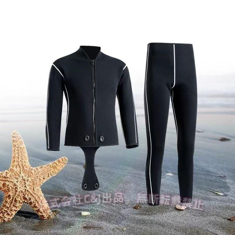 メンズウェットスーツ 5mm 2ピース ブラック 冬用 ネオプレン 超ストレッチC&Jフロントジップ フルボディ ダイビング用 サーマル保温 マリンスポーツ