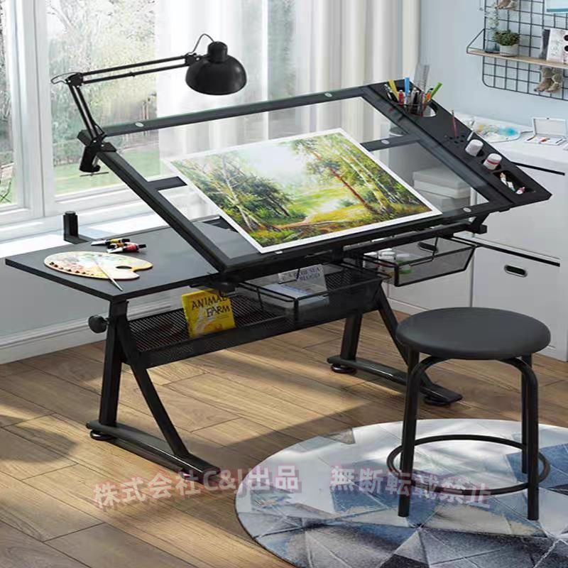 昇降式チルトスタンド 昇降式 スタンド 角度 高さ 調整 キャスター 製図台 大型アートクラフトワークステーション C&J 便利 お絵描き 絵画