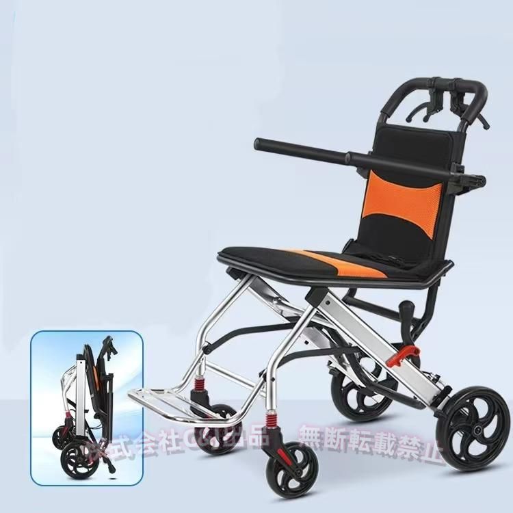 ポータブル軽量旅行用車椅子、ハンドブレーキ付き折りたたみトロリーフレームウルトラモビリティデバイス、超軽量アルミニウム製輸送用車椅子、屋内および屋外用