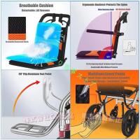 ? 展開サイズ: 34.6 インチ x 31.5 インチ x 18.9 インチ、折りたたみサイズ: 18.9 インチ x 29.5 インチ、耐荷重: 220 ポンド、車椅子の正味重量 19.8 ポンド。身長 1.78 メートル/5.8 フィート未満に推奨。