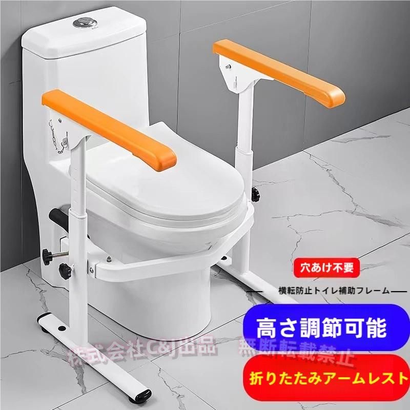 トイレ用手すり 立ち座りサポート 高さ調整55-70cm 幅12-41cmC&J(株)転倒防止 防水すべり止め 肘掛け折りたたみ 風呂トイレ 敬老