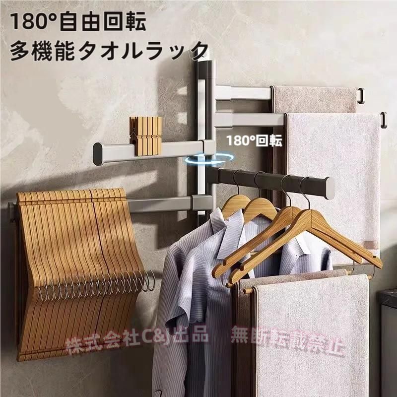 送料無料 タオル掛け バスタオル掛け タオルホルダー 180°自由回転 ハンガーラック ベランダ物干し C&J タオルバー バスタオルラック 物干し
