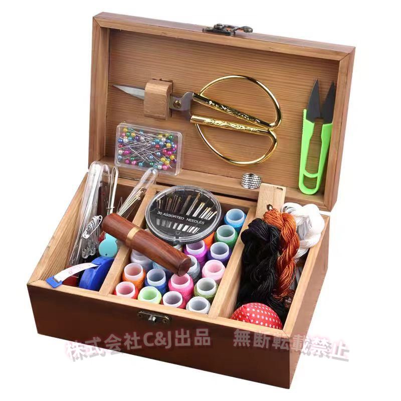 木製ソーイングボックス裁縫箱裁縫道具箱ソーイングセット大人用おしゃれ縫製アクセサリー裁縫ツール(株)C&J木製ボックス針糸収納ケース裁縫箱?収納