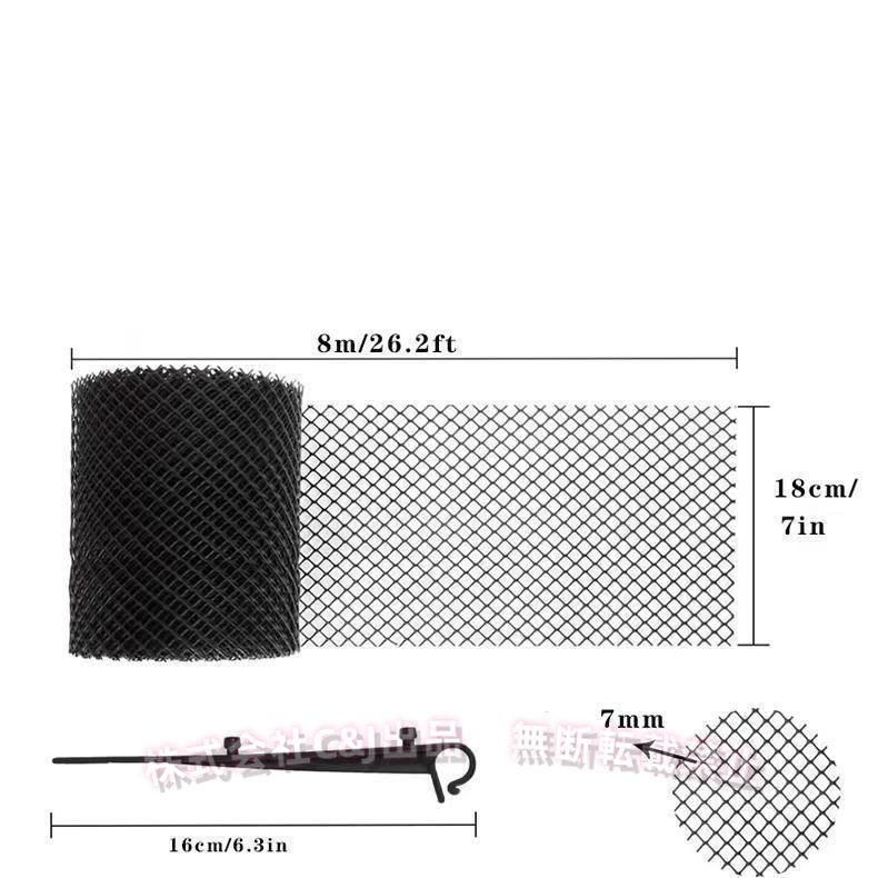 ★ 保護ネット:プラスチック製の排水トラフ保護ネットは、幅長さは16CM*6M と 18CM*8Mで、15個の固定フックが装備されています。