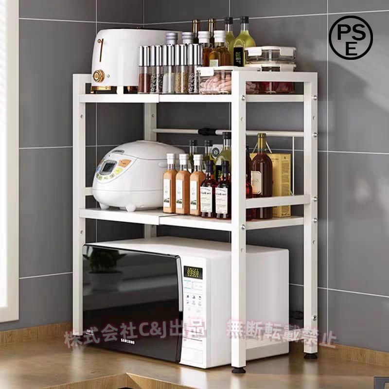 レンジ上ラック 伸縮式 2段 電子レンジラック 高さ調節 耐荷重30kgC&J(株)オーブンレンジ対応 キッチン収納ラック おしゃれ 省スペース