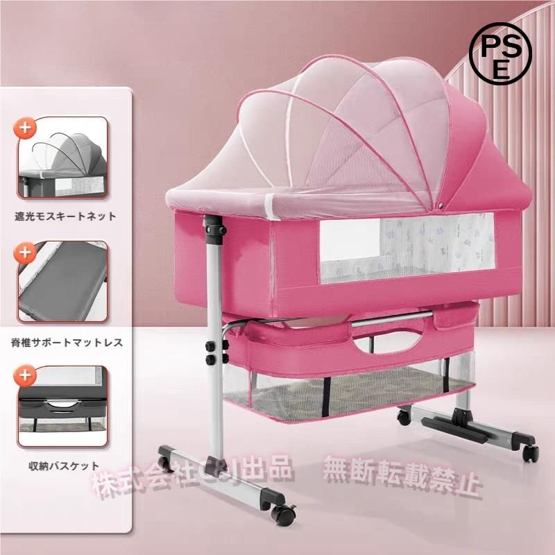 ベビーベッド 多機能添い寝C&J(株)折りたたみ式 取り外し可 新生児0-2歳 ゆりかご 蚊帳付き マットレス付 ベビーサークル兼用 里帰り 出産祝い