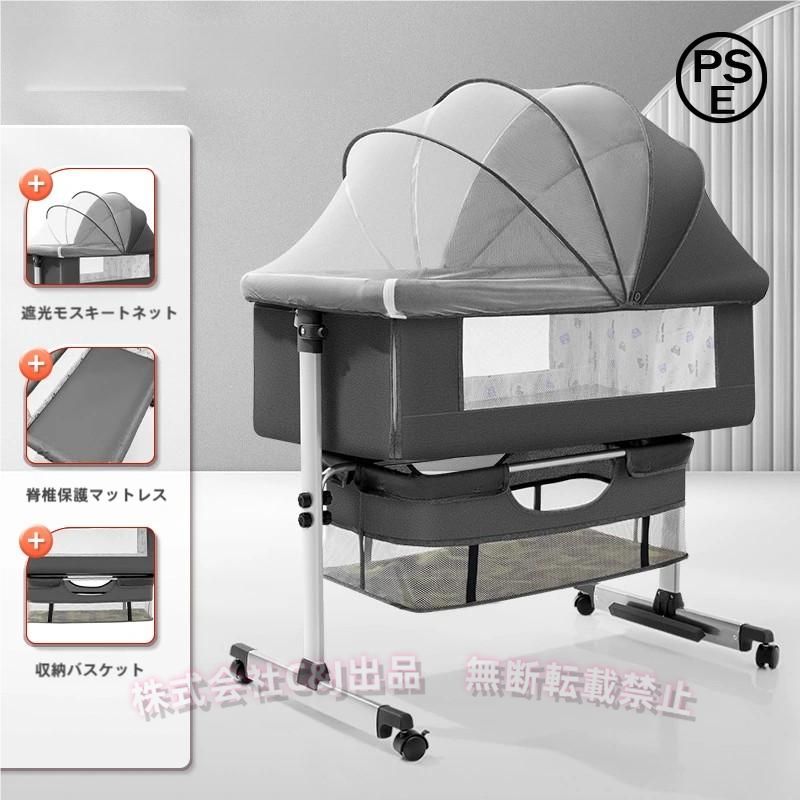 ベビーベッド 多機能添い寝C&J(株)折りたたみ 持ち運び 新生児0-2歳 ゆりかご 蚊帳付き マットレス ベビーサークル兼用 出産祝い 省スペース