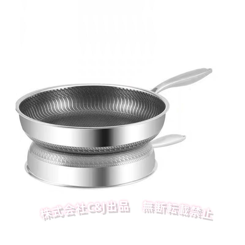 304ステンレス フライパン IH対応 蓋付き ノンスティック風 C&J(株) 耐熱ハンドル 7層複合鍋底 平底フライパン こげつきにくい 手入れ簡単 調理に便利