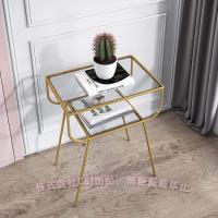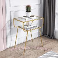 モダンなガラスナイトスタンド錬鉄北欧スタイルソファコーナーサイドテーブルクリエイティブホームベッドルームベッドサイドテーブル2層収納棚C&J ゴールド