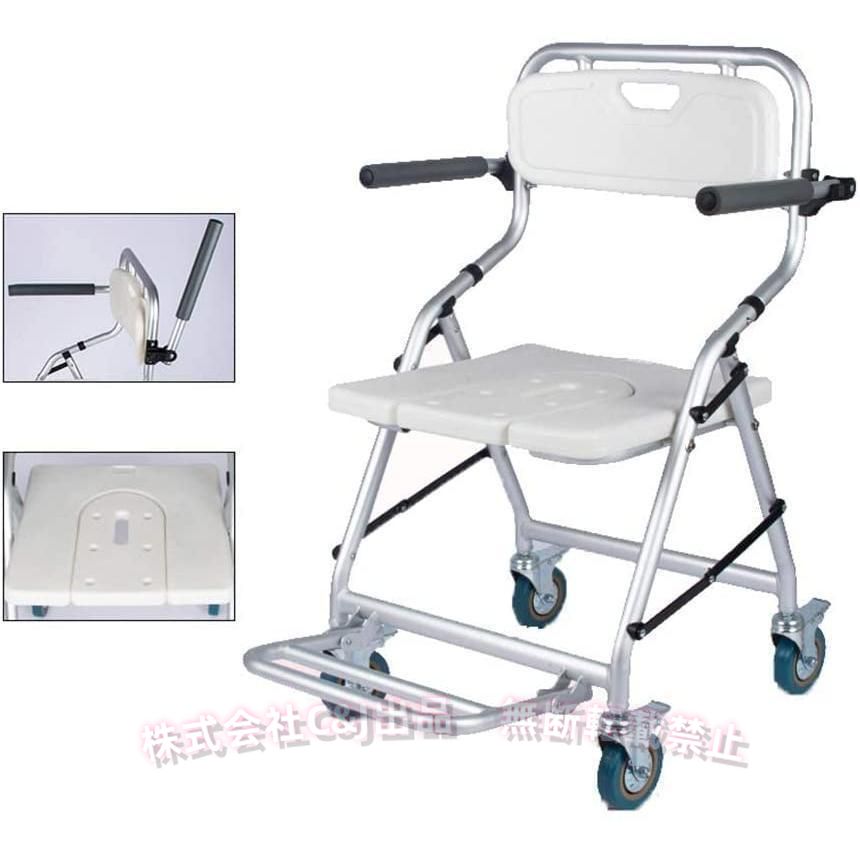 入浴用車いす介護シャワーチェアブレーキ付きC&JU型シート軽量キャスター付背もたれバスチェア滑り止め防水トイレ兼用介護用品高齢者妊婦安全