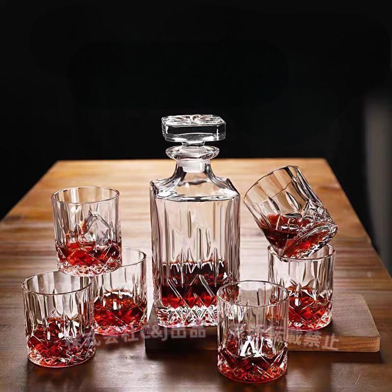 ウイスキーデカンタ6点セットウイスキーグラスウィスキーバーボンスコッチリキュールノン鉛ウイスキーデキャンタ錦クリスタルバーボンデカンタセット記念日誕
