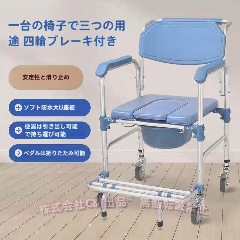 入浴用車いす シャワーチェアー 椅子式トイレ キャリー C&J 車椅子 省スペース 簡易シャワー 入浴 シャワー用 背もたれ付き 移動 介護 福祉 高齢者 便利