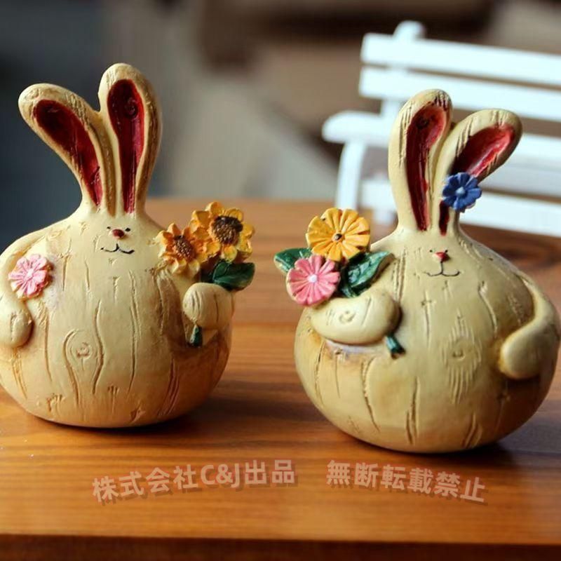 【楽しい庭時間】:可愛いオブジェ兎の置物です。丁寧な細工と可愛らしい見た目は、まるで本物のフェアリーが庭に住んでいるようです。大切な家人と一緒に楽しそうな姿、庭に遊んでいるみたい姿すぐに目を惹かれます!ガーデニングをおしゃれに楽しむガーデンオーナメントです。