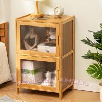 竹製ナイトテーブルサイドテーブル3種類のドアパネルベッドサイドテーブルC&J収納しやすいキャビネットベッド周り収納組立簡単幅43cm×奥行32cm×高さ68cm