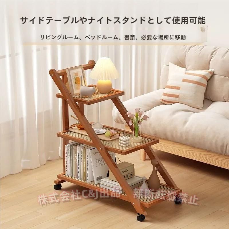 テーブル ストッパー付きキャスター C&J 移動簡単 2段収納 小物置き おしゃれ