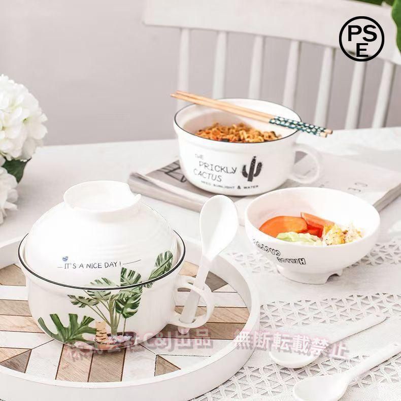 ラーメン丼 蓋付き セラミック 国産 ラーメン鉢 電子レンジ対応 C&J(株) 軽い 割れにくい 日本の食器 スプーン 箸付き インスタントラーメン どんぶり