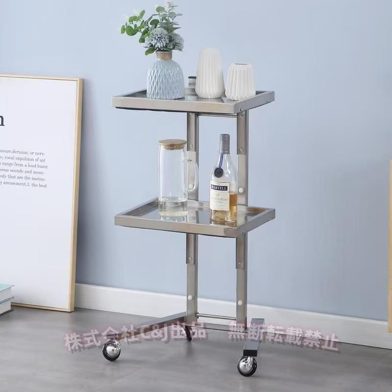美容車用カート、 折りたたみ 美容室ワゴン キャスター付き キッチンワゴン 美容室ラック コンパクト収納 取っ手付き 防水 ステンレス製 トレイ 医療用カート