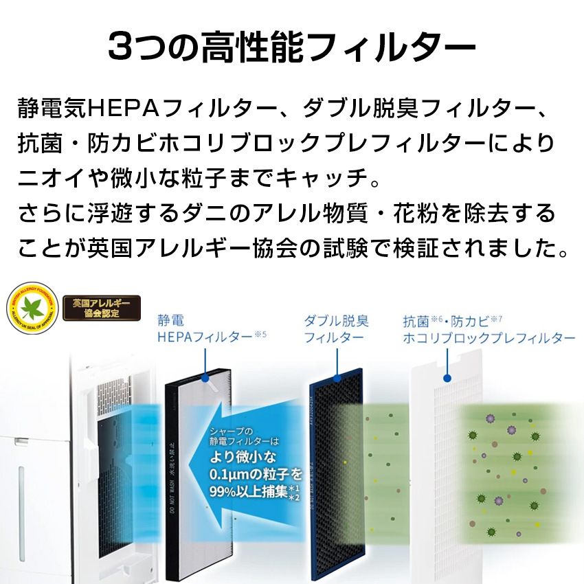 3つの高性能フィルターでダニや花粉をしっかり除去。