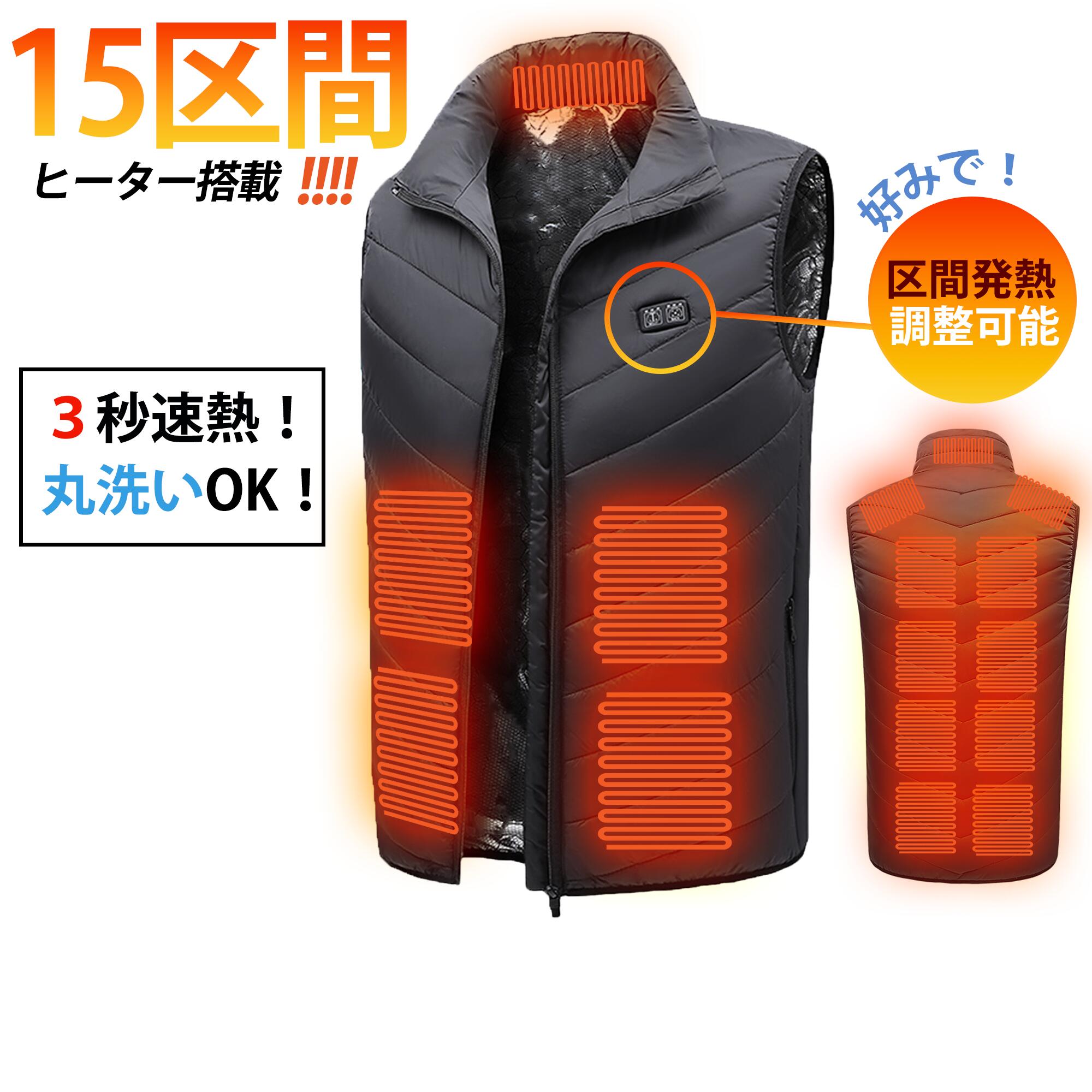 ヒーターベスト 電熱ベスト 15箇所発熱 ヒーター USB 電熱ジャケット 加熱パネル15枚 加熱ベスト 電熱ウェア 冬用 温熱 中綿 3段階調温 速暖 洗える 男女兼用