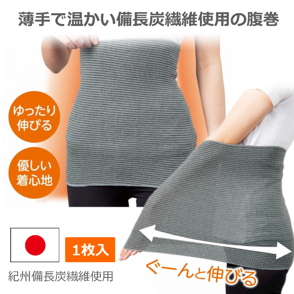 薄手で温かい紀州備長炭繊維使用の腹巻。
