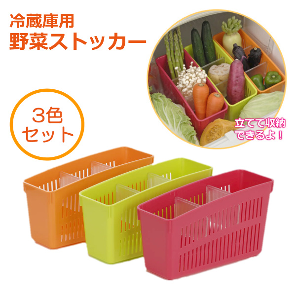 冷蔵庫 野菜室 やさい収納容器 3個セット 野菜ストッカー ケース 立てて 収納 保存 冷蔵庫用収納ケース ボックス 整理 整頓 グッズ