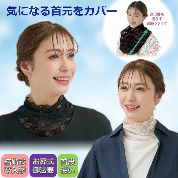 ネックカバー 首カバー 首だけ レース ネックウォーマー お洒落 伸縮 取り外し うなじ 首 しわ キズ 隠し フォーマル レディース エレガント ネックカバー