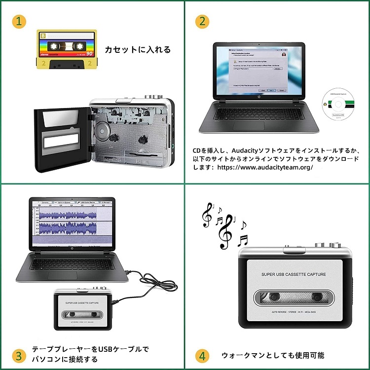 カセットテープの音源をMP3等デジタルデータに簡単変換。