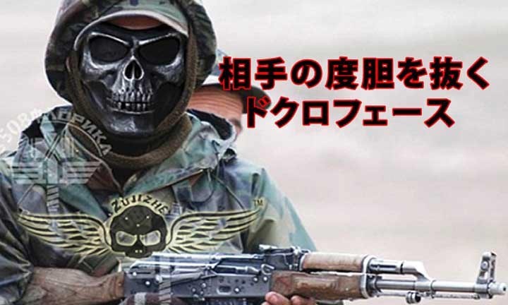・恐怖のスカルマスクです。ヘルメットと同時装着も可能です。