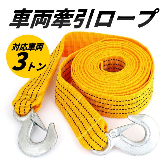 車両牽引ロープ 緊急/事故用 両端フック付 牽引ベルト ケーブル 3トン LP-CTS350G