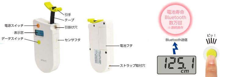 | 構成材料 | 巻尺:PVC + グラスファイバー / 引手:ABS / ケース:ABS / 他電子部品 |
