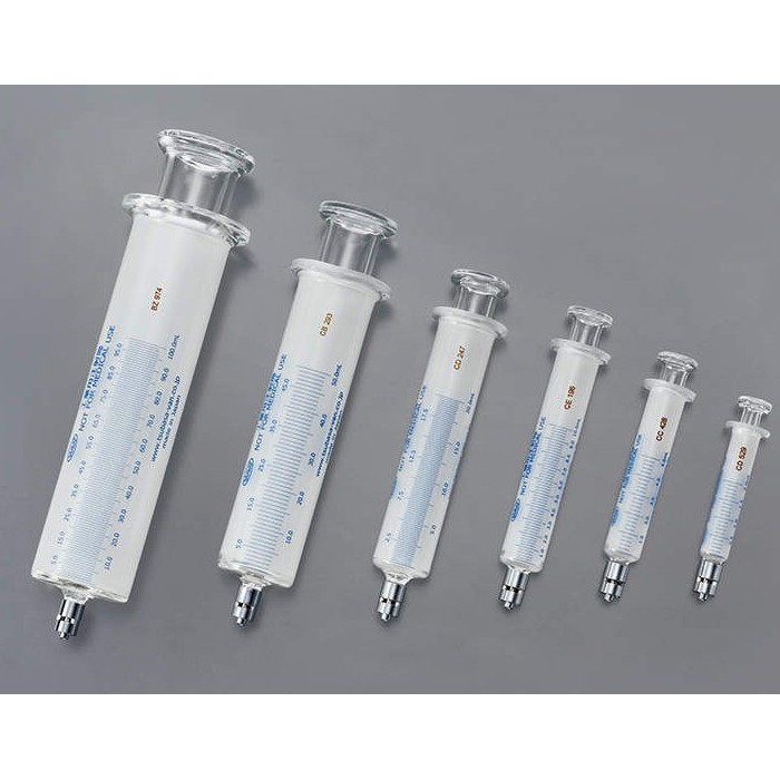 ● 濃色液が見やすい青色目盛のロック先注射器。