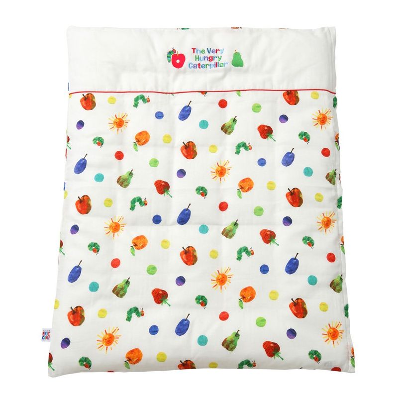 絵本でおなじみ「はらぺこあおむし」のミニサイズのベビー掛け布団カバー。鮮やかなカラーでプリントされたダブルガーゼ生地を使用。洗い替え用に最適な単品販売