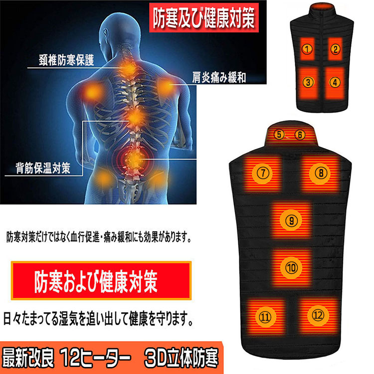 電熱ベスト ヒーターベスト 発熱ベスト 加熱ベスト 電気ベスト 電熱 モバイルバッテリーベスト 冬防寒ウェア 極暖ベスト 暖かい服